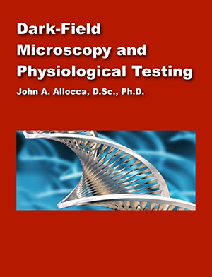 John A. Allocca, D.Sc., Ph.D. Copyright 2012 ISBN 978-1544010694 62 - 8.5" x 11" pages Dark Field Microscopy is a method of evaluating blood while it is biologically active. Blood is obtained by the finger-stick method under sterile conditions and observed using Dark Field microscopy. There are many cells and substances that can be seen in biologically active blood, including lipids, indicators of toxicity, oxidation, etc. The Dark Field microscope is an important tool used to evaluate candida albicans overgrowth. This book also covers physiological testing. Table of Contents Chapter 1 - The Microscope Chapter 2 - Collecting and Preparing Specimens Chapter 3 - Dark-field Identification Chapter 7 - Hidden Infections Chapter 5 - Microscope Supplies Chapter 6 - Microscope Recommendations Chapter 7 - Microphotography Chapter 8 - Microscopy Form Chapter 9 - CPT Codes Chapter 10 - Andromeda Assessment and Wellness Plan Chapter 11 - Blood Pressure Chapter 12 - Body Temperature Chapter 13 - Zinc Sulfate Heptahydrate Test Chapter 14 - Urinalysis Chapter 15 - Bioelectrical Impedance Analysis (BIA) Chapter 16 - Blood Glucose Chapter 17 - Peripheral Vascular Sonography Chapter 18 - Physiological Testing Equipment and Supplies Chapter 19 - Nutritional Guidelines CLICK to order the printed book from Amazon Because of the extensive use of diagrams and tables, ebooks are not as easy to read as printed books. CLICK to Return to Page Menu |