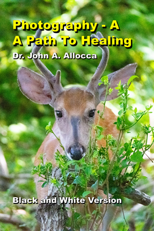 In essence, photography becomes a way for these individuals to celebrate, honor, and protect the natural world while also expressing their creativity and passion. Almost everyone in western society has a cell phone with a camera, which makes photography easy. Photography is a tool used in this methodology to to explore what people feel inside. Any camera or cell phone can be used. What are you called to photograph? What emotions does the photograph bring to the surface? How does it make you feel? This book will help to guide you through this process. This book contains two of Dr. Allocca's personal journeys: 2009 and 2018 with some additions from 2019 , 2020, 2021, and 2022. Dr. Allocca is a medical research scientist and biophysicist with many years of personal experience in photography and with some knowledge of Buddhism, Shamanism, Yoga, self-discovery, and personal growth. CLICK to order the color printed book from Amazon CLICK to order the Black and White printed book from Amazon CLICK to order the ebook from Amazon CLICK to Return to Page Menu |